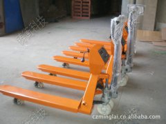 該叉車秤是指在小型手動液壓升降搬運車基礎上增加高精度稱重傳感器和智能化數(shù)字顯示儀表而組成的稱重系統(tǒng),實現(xiàn)了貨物的搬運和稱重同步進行,每次稱重的數(shù)據(jù)可以自動顯示
